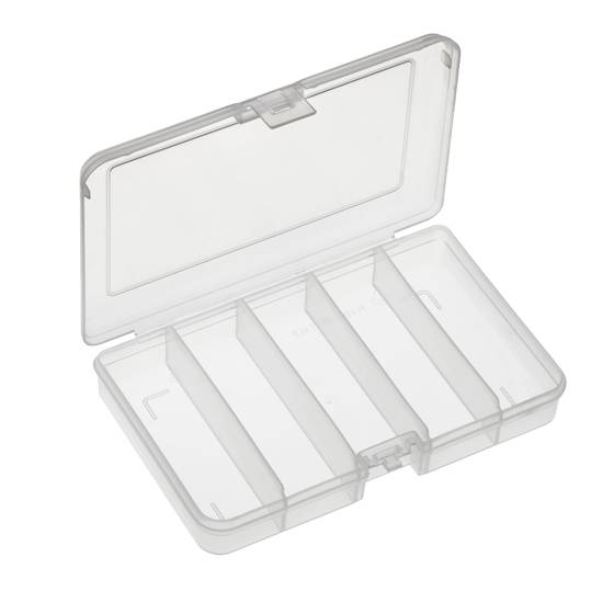 Boîte 5 compartiments en polypropylène transparent, idéal pour le rangement de petites pièces