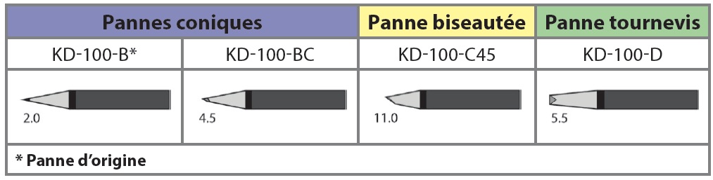 Livré avec panne coniques 2mm KD-100-B