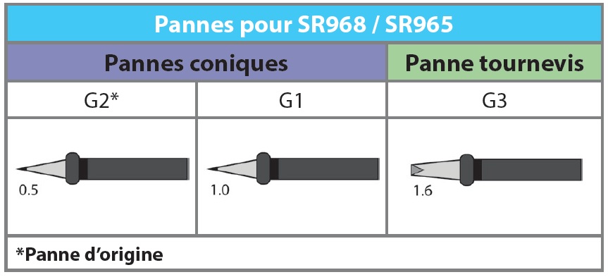 Panne conique Ø 1,0mm pour série SR