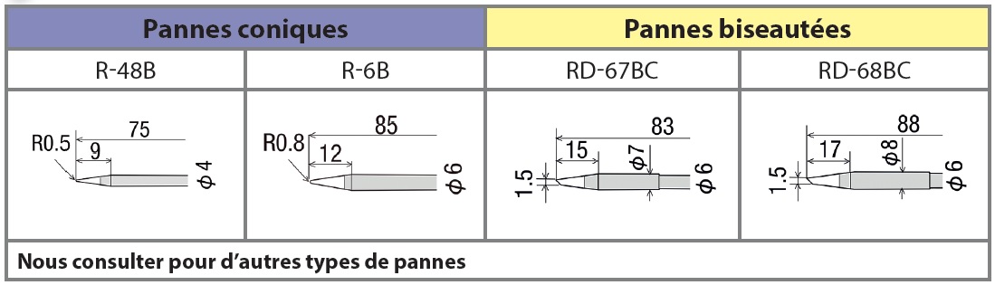 Panne biseautée Ø 1,5mm pour série KX-xx